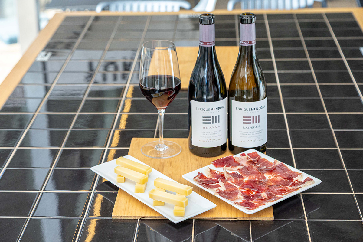 El jamón ibérico de cebo de campo “Aura Ibérica”, con su grasa infiltrada y textura untuosa, encontró un contrapunto perfecto en la acidez y frescura de los vinos de Monastrell, no sólo con los presentados, sino también con el Enrique Mendoza rosado y el Enrique Mendoza Chardonnay.