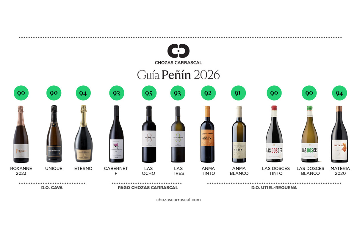 Una vez más, Chozas Carrascal se sitúa entre las bodegas más destacadas del panorama vitivinícola español gracias a las excelentes puntuaciones que han obtenido once de sus referencias en la nueva edición de la Guía Peñín. Desde sus cavas hasta sus vinos de Pago, pasando por sus blancos y tintos con el sello de la DO Utiel-Requena, la familia López-Piedro confirma que su proyecto es sinónimo de calidad, pasión y carácter.