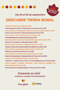 Entre las actividades destacadas, que se encuentran detalladas en la web de Tierra Bobal, destacan: