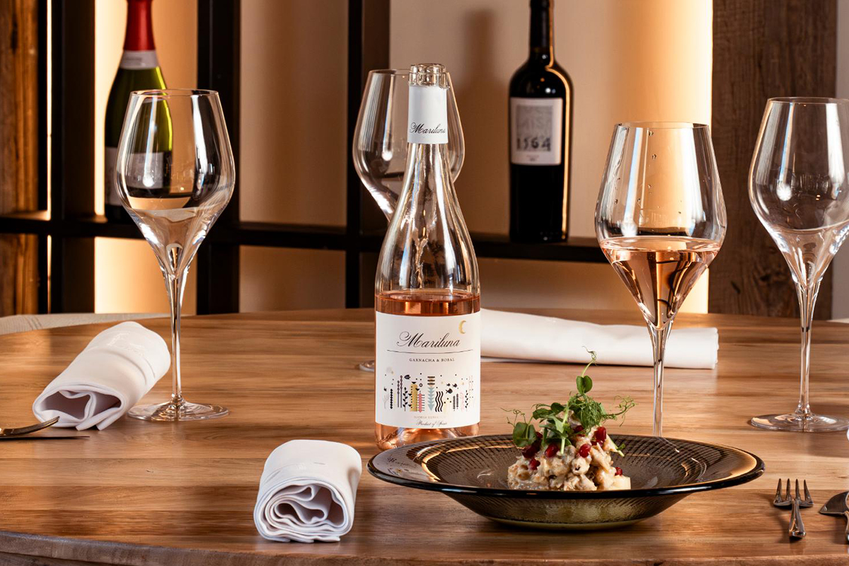 Mariluna Rosado, elaborado 85% con garnacha 85% y 15% con bobal, es una interpretación fresca y floral del Mediterráneo, con fruta roja y un toque cítrico que lo hace especialmente versátil.